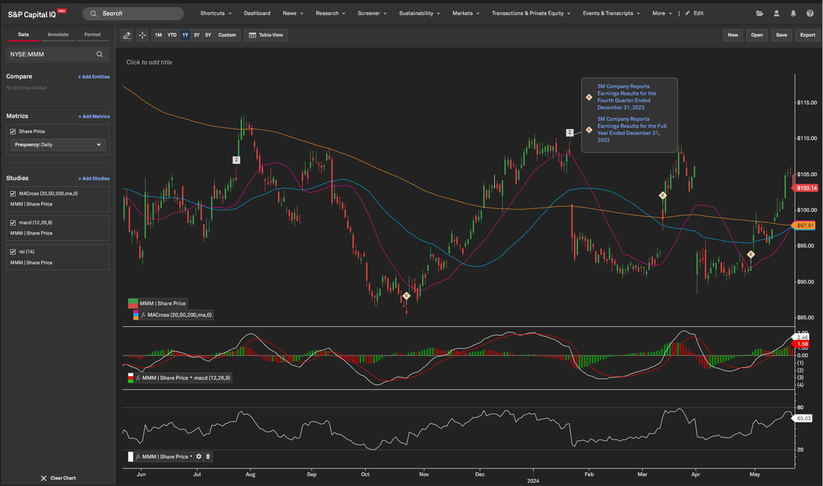 We introduced Chart Builder (Beta) to help customize your visual analysis with our library of pre-built charts and technical indicators, drawing tools, annotations with key developments, and the ability to create custom aggregates.