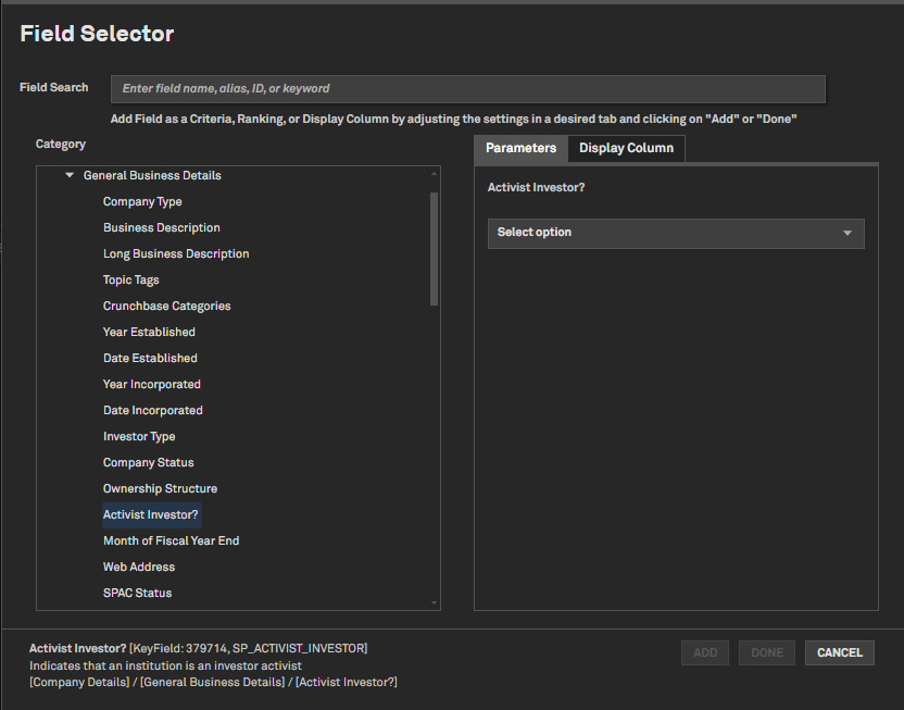 Investor Activism Screener Enhancements