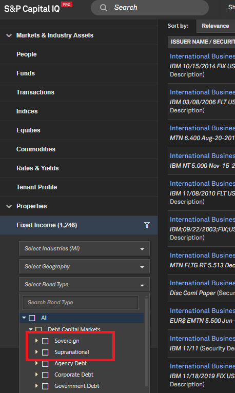 Government, Supranational, Agency, and Corporate (GSAC) securities in Search