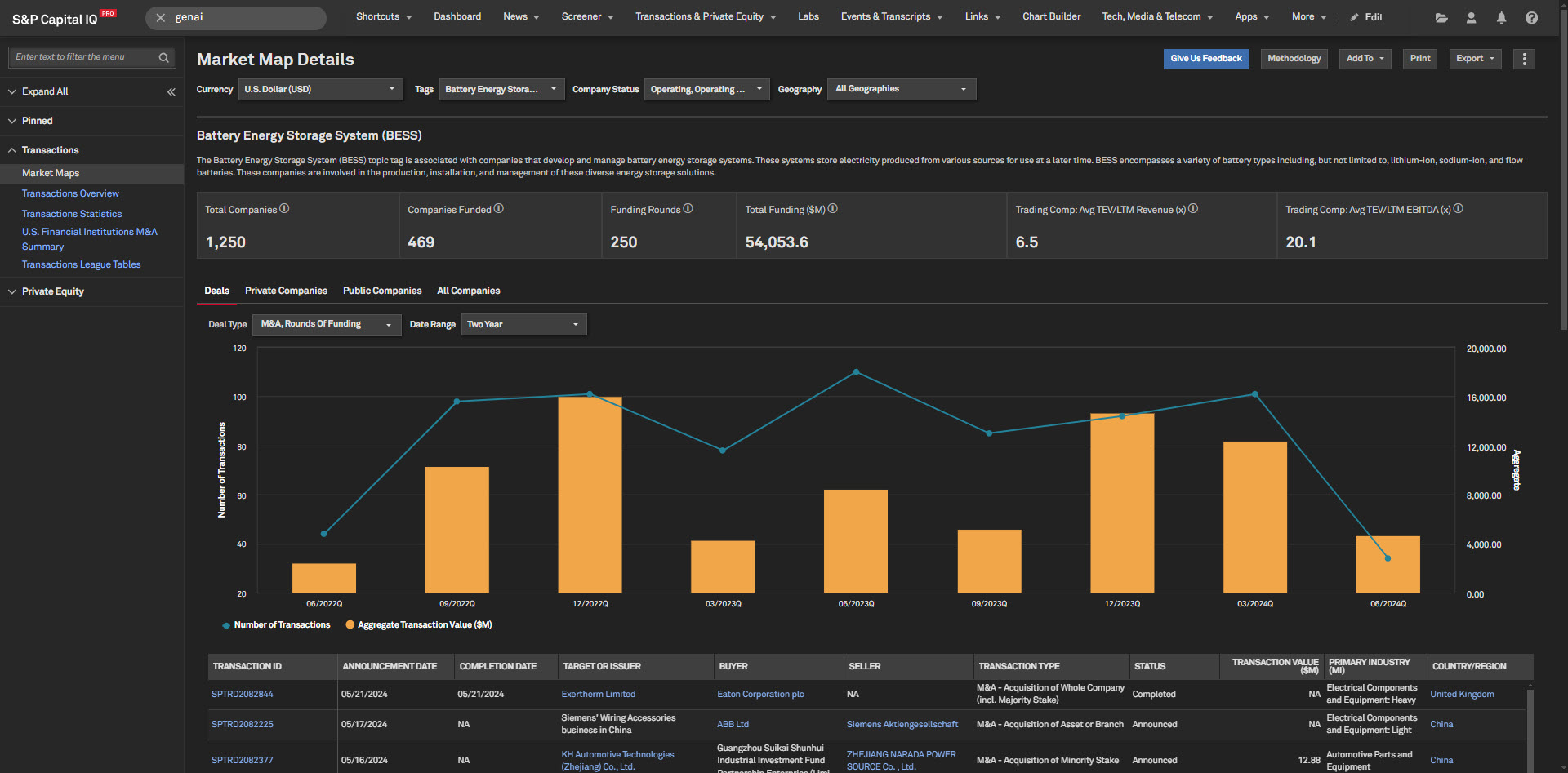 Users can access 14 new Topic Tags available in Market Maps, Screener, and Corporate Profile, allowing users to identify companies that operate in these niche markets, supporting the deal sourcing workflow. The new topic tags are - Residential Solar; Utility-Scale Solar; Onshore and Offshore Wind; Advanced Nuclear; Battery Energy Storage System; Electric Vehicle Charging Infrastructure; Anaerobic Digestion; Hydrogen; Carbon Capture, Utilization and Sequestration; Direct Air Capture; Green Steel; Renewable Ammonia; Bio-based & Renewable Materials; and Sustainable Aviation Fuel. With these additions, users can now access over 290 market maps to get a top level view of the fundraising and deal activity and its participants in these niche industries.
