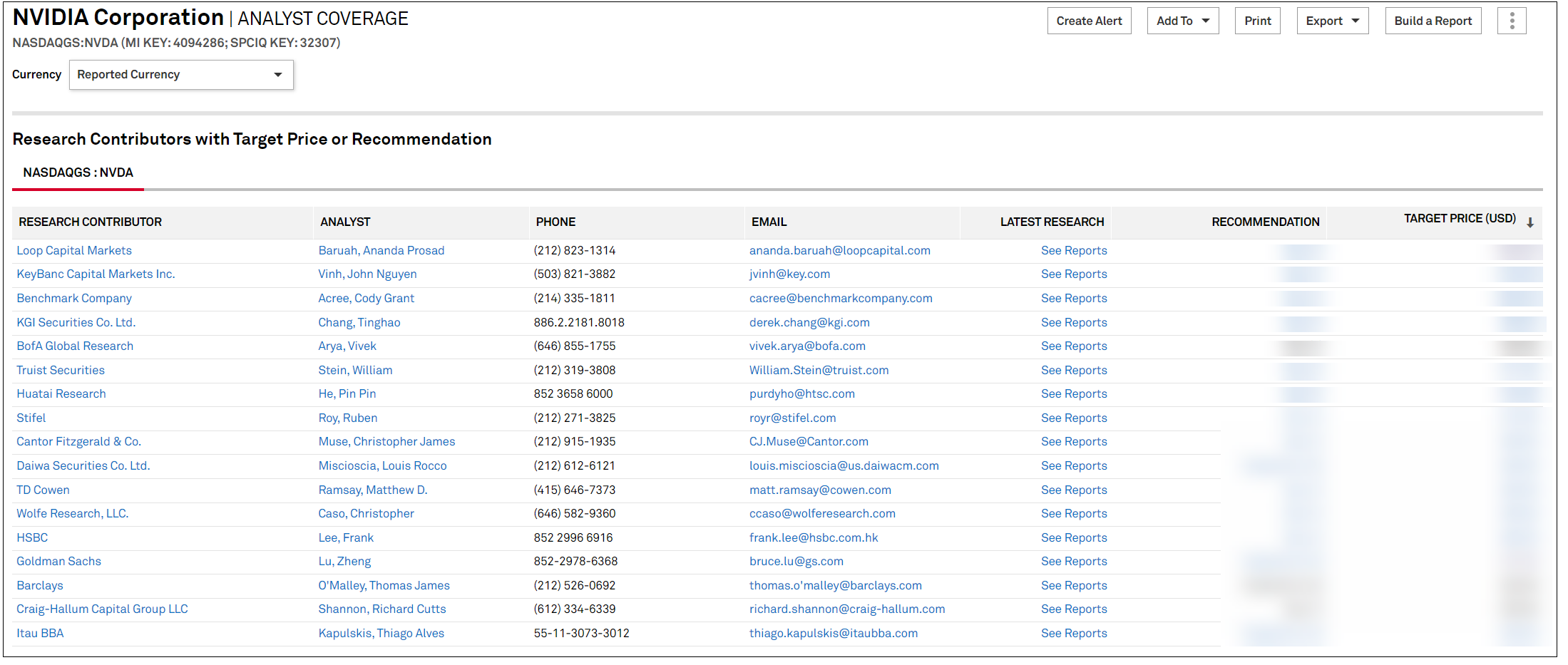 Users can pull the individual contributor price target estimates for commodities in S&P Capital IQ Pro plug-in, along with the broker and analyst names, to enhance their models with more granular data and to highlight specific contributor estimates.