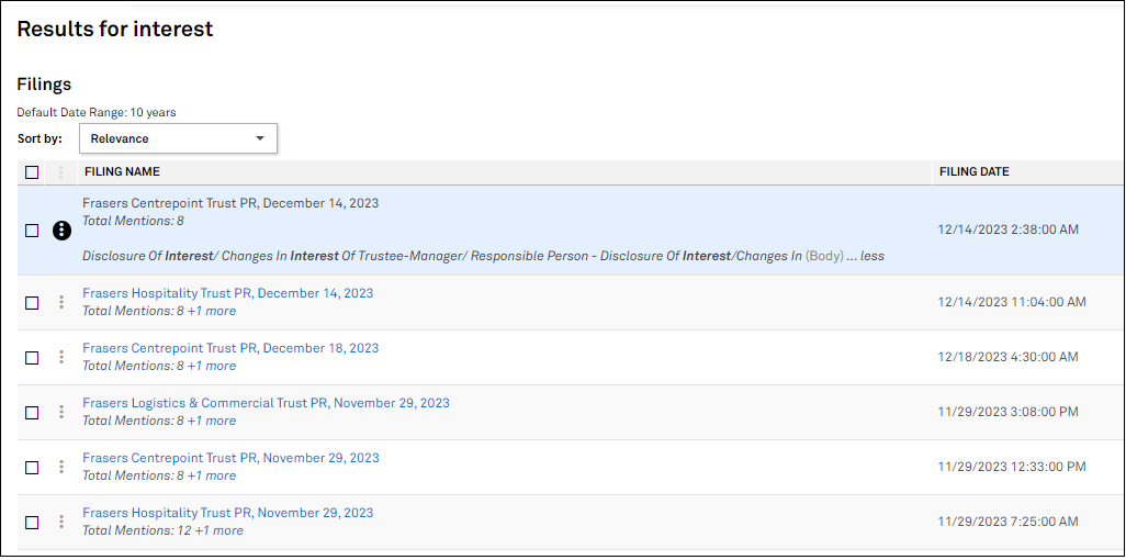 In this release, we added a new metric, the total number of keyword mentions within the Filings filter, on the search results page. This provides the ability to view the number of keyword matches within a selected group of Filings to help users determine which document is of higher relevance for their research. Additional enhancements to search include pricing data availability in the search bar dropdown, improved relevancy, ability to search across data fields, along with topic tags search in company screener queries, and local language search in Chinese (PRC), Japanese and Korean languages.