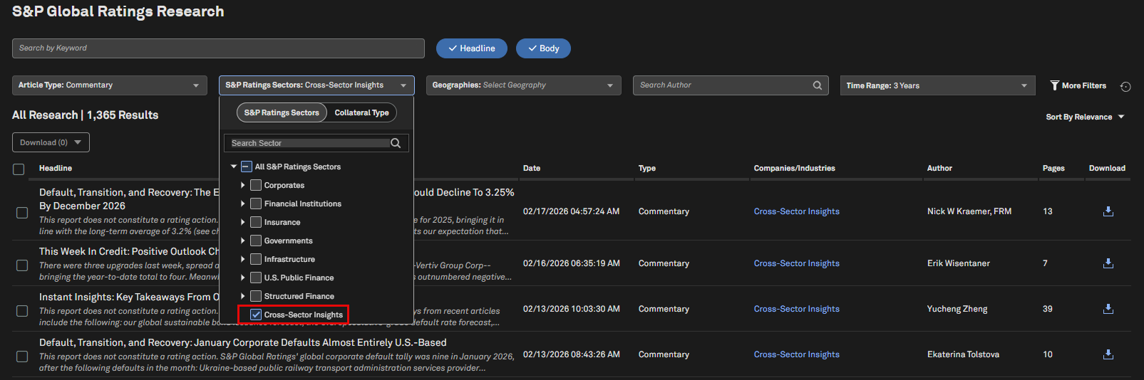 Scroll down to the Sector & Economic Reports tile and select any document