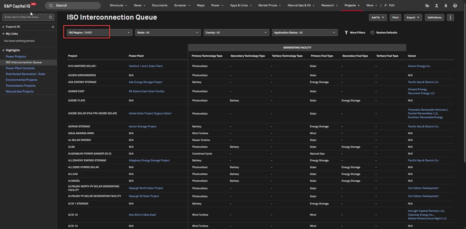 Navigate to any page within the S&P Capital IQ Pro platform