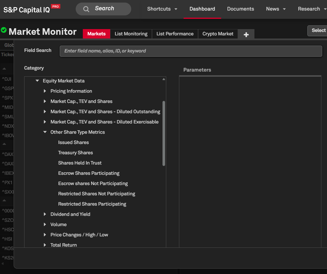 In this release, we enhanced the S&P Capital IQ Pro Dashboard by introducing metrics for multiple share types. Additionally, we added price-change and 52-week high-low data for Fixed Income Indices, providing a more comprehensive view of market dynamics.