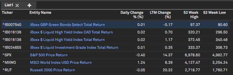 Users can now access price change and 52-week high/low metrics for Fixed Income indices directly within the Dashboard’s List and Quote widgets.