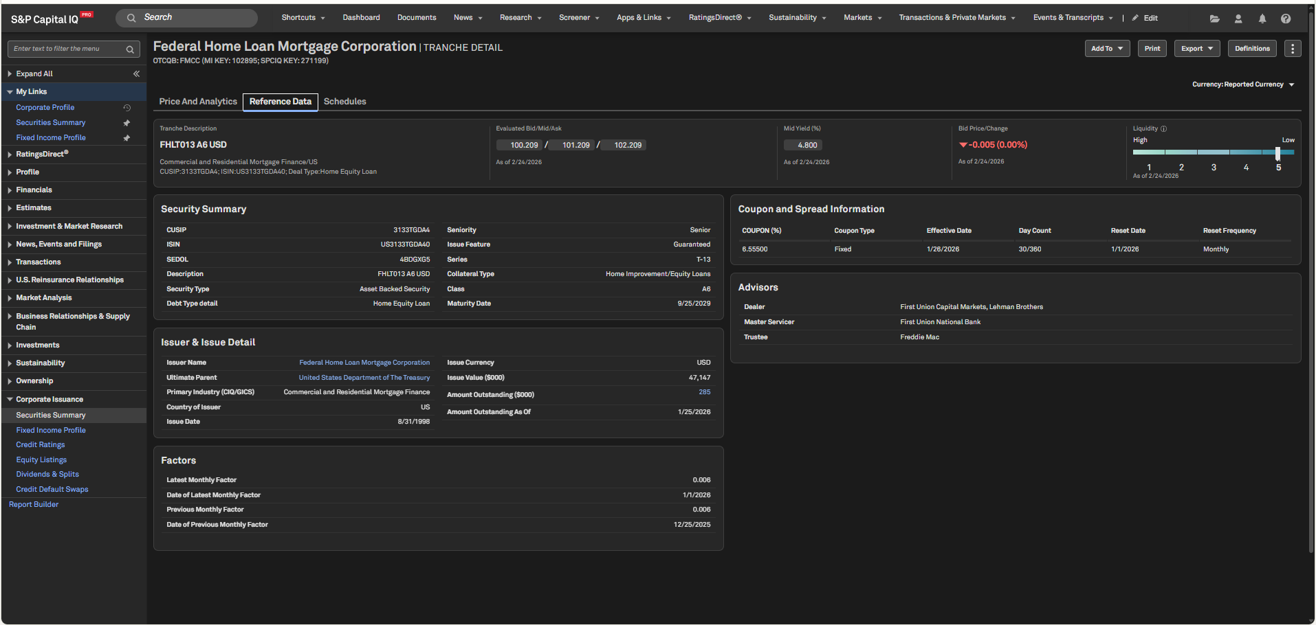 In this release, we integrated over 4 million structured securities from Markit, including 3.2 million net new additions. These securities feature enhanced pricing, analytics, and liquidity data, along with more granular reference information such as collateral type and advisor roles. This expanded coverage is integrated across multiple workflows, including Search, Dashboard, Screener, the S&P Capital IQ Pro Plug-in, and the Capital Issuance page filters.