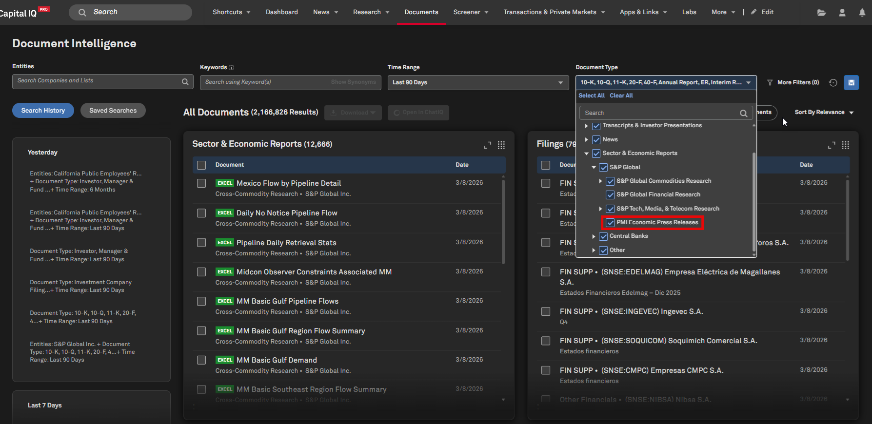 Users can now access Purchasing Managers’ Index (PMI) Economic Press Releases within the Sector & Economic Reports tile in Document Intelligence, enabling comprehensive economic analysis.